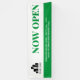 Simple ouvert pour bannière d'entreprise dans un design vert et blanc minimal avec MAINTENANT OUVERT écrit en grandes lettres. Ajoutez votre logo et du texte supplémentaire si nécessaire.