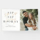 Il est temps de fêter ça ! La bannière de notre Sip Sip Hooray Modern Gold Script Engagement Party comprend "sip sip sip hooray" dans une présentation moderne de type duo avec une fausse feuille d'or typographie de script lettrée sur le type serif classique, et est personnalisée dans le type sans serif moderne. Votre photo de fiançailles préférée est affichée à droite. Un design moderne qui est parfait pour les fêtes de fiançailles, anniversaires, diplômes, dîners de répétition, anniversaires, mariages, douches nuptiales, douches en couple - tant de possibilités! Copyright Anastasia Surridge pour Invitations élégants, tous droits réservés.