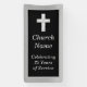 Commémorez votre 25e anniversaire d'église avec cette belle bannière personnalisée en noir et argent. Croix chrétienne.