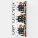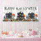 Plongez dans l'esprit d'Halloween avec cette bannière de fête effrayante ! Avec « Joyeux Halloween » écrit dans une police gothique vintage, le design met en vedette trois maisons hantées noires accentuées par des touches d'orange provenant de citrouilles, de lanternes et d'arbres inquiétants. La palette de couleurs noir et blanc, associée à une typographie inspirée du grunge, donne à la bannière une ambiance nostalgique et gothique, parfaite pour donner le ton à vos festivités d'Halloween. Cette bannière ajoute une touche ludique et inquiétante à votre soirée costumée ou événement effrayant, en faisant une décoration amusante et festive pour toute réunion d'Halloween ! Bannière de fête d'Halloween de maison hantée Décor de manoir vintage Citrouilles Fantômes Chauves-souris