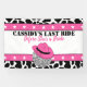 Célébrez les mariées à être avec cette disco cothèque cowgirl à thème de la bachelorette bannière de fête. Il présente une amusante impression de vache noire et blanche avec l'illustration d'une boule de disco portant un casquette de cowboy rose. Le texte est prêt à être customisé avec votre propre message.