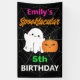 Bannière verticale Spooktaculaire Halloween Kids mignonne Birthday avec le fantôme, citrouille, et toile d'araignée. Personnalisez-le avec vos informations ou éditez-le plus loin pour la couleur de police ou la taille dans l'outil de conception.