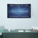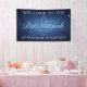 De belles nuances profondes de bleu foncé créent une texture comme de l'eau sur cette bannière d'accueil Bat mitzvah formelle. Élégant script blanc minimaliste sur la décoration avec le nom de votre fille sur la subtile étoile de David pour célébrer son arrivée juive d'âge.