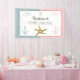 Estarfish or aux ancres rose pastel et bleu pastel bienvenue bannière pour les parties de révélations de genre. Thème nautique en or, bleu, blanc et noir. Le design présente une étoile de mer dorée, le texte "Il ou elle" et des ancres rose pastel et bleu pastel. L'arrière - plan est mi-bleu pastel, mi-rose pastel.