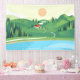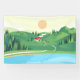 Illustration en style plat maison dans la colline avec lac et forêt près de beaux paysages illustration