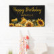 Bannière de fête d'anniversaire personnalisée avec des tournesols jaunes sur un arrière - plan noir. Personnalisé avec le nom de l'invité d'honneur. Contactez-moi pour obtenir de l'aide sur vos personnalisations ou pour demander des produits Zazzle correspondants ou coordonnés supplémentaires pour votre célébration.
