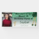 Elégante parties scintillant verte tombant sur un arrière - plan dégradé vert. Quelques décorations amusantes sont ornées de la bannière : verres à cocktails dorés, coeurs verts sur chaînes d'or et une énorme feuille de gemme vert foncé. Ajoutez votre photo personnalisée à gauche de la bannière. Si vous avez besoin d'aide, veuillez me contacter.