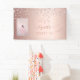 Une bannière pour une fête de 16 ans Sweet 16, 16e anniversaire, girly et glamour. Un arrière - plan rose en or avec des faux diamants. Personnalisez et ajoutez votre propre photo, un nom écrit en or rose foncé avec un grand script de style moderne écrit à la main avec des swashes. Pour que les swashes ne suppriment que le nom de l'échantillon, laissez les espaces ou émoticônes devant et après le nom. Modèles pour une date et l'âge 16. Idéal à la fois comme bannière de bienvenue ou comme décor de fête.