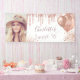 Pour une soirée Sweet 16, 16ème anniversaire. Une arrière - plan blanche design. Décoré avec des gouttes de parties scintillant en or rose, l'aspect de la peinture goutte à goutte, gouttes de parties scintillant et ballons. Personnalisez et ajoutez une photo et le nom. Idéal à la fois comme bannière de bienvenue ou comme décor de fête. Utilisez une photo verticale/portrait.