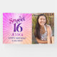 "Bonne Douce 16". Célébrez son anniversaire avec cette bannière photo personnalisée, super et rétro. Sur le côté gauche, une typographie marrante, tendance, audacieuse, rose brun et violette avec une typographie sans serif moderne superpose un arrière - plan de pop orange et rose sombre rayonnements avec des points blancs. Ajoutez sa photo personnalisée sur la droite. Personnalisez le texte personnalisé avec le nom de votre fille, son anniversaire et modifiez la copie de voeux si vous le souhaitez. Choisissez parmi plusieurs tailles. (Si vous voulez agrandir, assurez-vous que votre photo personnalisée est assez grande pour être imprimée à une taille plus grande sans être pixelisée ou floue! Vous recevrez un avertissement avant d'acheter si cela semble être un problème). Cette bannière design de bienvenue photo est garantie de donner le ton juste pour sa célébration spéciale ! Invitations, assiettes, serviettes, autocollants et autres cadeaux d'anniversaire sont également disponibles dans cette collection cool et unique. Remplacez simplement la photo par une de vos propres, tapez le nom et la date de naissance de la fille d’anniversaire et vous pouvez facilement personnaliser cette bannière Sweet 16 photo bienvenue. S'il vous plaît, envoyez-moi un message avec toute question ou demande.