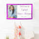 Belle bannière avec "Sweet Sixteen" réalisé dans un bel effet de paillettes violet. De fausses étoiles scintillantes accompagnent votre photo et peuvent être redimensionnées et déplacées à votre guise. Personnalisez cette belle bannière pour l'adapter à votre événement ou occasion. Ajoutez votre photo et votre message préférés. Parfait pour Sweet Sixteen, Bat Mitzvah et Quinceanera.