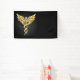 Symboles Caduceus polygonaux or sur arrière - plan noir isolé. Basse poly symbole de la médecine.