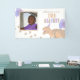 DEUX peuvent être changés à n'importe quel âge. Prêt à être customisé par vous, cette jolie bannière photo d'anniversaire de dinosaure T-Rex apportera une touche personnalisée à votre décor de fête. Ajoutez la photo de votre enfant à la bannière de la fête où il sera entouré par le joyeux dino Trex, ballons et pistes de dinosaures. Ajoutez ensuite le nom et l'âge d'anniversaire de votre enfant pour une bannière d'anniversaire de dinosaure personnalisée. Conçu pour être neutre sur le plan du genre dans les tons bruns, tans, pêche, violets et bleus, cette bannière photo pour enfant sera très belle accrochée dans le lieu de votre fête pour votre petit garçon ou fille.