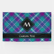 Design écossais vert mer, violet et bleu. Motif sans couture. Texte et monogramme personnalisés.