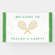 Confortez vos invités avec style avec cette bannière personnalisée avec le texte de votre choix et des raquettes et balles de tennis en or. Le texte est personnalisable. Une partie d'une collection de Parcel Studios. *Note : L'or de ce produit est simulé. Aucune feuille d'or ne sera utilisée dans la fabrication de ce produit.
