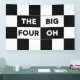 40th birthday party banner features a bold black and white checkered pattern with the words "The Big Four Oh" in alternating white on black and black on white text.
