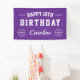 Basketball thème Joyeux anniversaire fête personnalisée Bannière. Design sportif avec typographie amusante et couleur arrière - plan violette personnalisée. Signalisation personnalisée pour accrocher sur la clôture, balcon, pont, véranda ou mur. Disponible en différentes tailles pour l'intérieur et l'extérieur. Petites formes moyennes et grandes. Avec ou sans trous et crochets. Accessoires tendance, décorations et fournitures pour les Anniversaires surprises, mariage, douche nuptiale, anniversaire, jubilé, retraite, réunion, rassemblement, etc. Décor de fête d'anniversaire mignon pour fille ou garçon. Modèle d'âge personnalisable. Idéal aussi pour les fêtes pour adultes. Célébrez la 10ème 16ème 21ème 30ème 40ème 50ème 60ème 70ème 80ème 90ème jour du B etc. L'intérieur et l'extérieur. Fille surprise, petite-fille, maman, papa, coach, amis, famille, joueurs d'équipe etc.