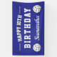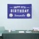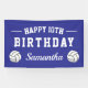 Thème de volleyball Joyeux anniversaire fête personnalisée Bannière. Design sportif avec typographie amusante et couleur arrière - plan bleue personnalisée. Signalisation personnalisée pour accrocher sur la clôture, balcon, pont, véranda ou mur. Disponible en différentes tailles pour l'intérieur et l'extérieur. Petites formes moyennes et grandes. Avec ou sans trous et crochets. Accessoires tendance, décorations et fournitures pour les Anniversaires surprises, mariage, douche nuptiale, anniversaire, jubilé, retraite, réunion, rassemblement, etc. Décor de fête d'anniversaire mignon pour fille ou garçon. Modèle d'âge personnalisable. Idéal aussi pour les fêtes pour adultes. Célébrez la 10ème 16ème 21ème 30ème 40ème 50ème 60ème 70ème 80ème 90ème jour du B etc. L'intérieur et l'extérieur. Fille surprise, petite-fille, maman, papa, coach, amis, famille, joueurs d'équipe etc.