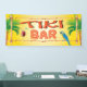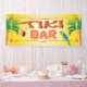 Panneau de bannière Tiki Bar pour la fête du thème de la plage ou l'événement luau. Design coloré avec cadre en bambou, palmiers, fontes amusantes, perroquet et boisson tropicale. Choisissez une bannière de qualité intérieure ou extérieure.