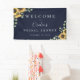 Belle aquarelle tournesol et bouquets d'eucalyptus, bannière personnalisée marine bleu événement. Style de police de texte, couleur et taille, peut être customisé.