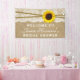 Cette bannière rustique tournesol, kraft et dentelle de douche nuptiale fera l'accessoire parfait pour toute future mariée ! Le design est composé d'un arrière - plan rustique à effet kraft avec une finition vintage romantique à effet de dentelle blanche finie avec un superbe tournesol et une ficelle. Ce modèle de bannière peut être personnalisé pour votre occasion spéciale et ferait le faire-part parfait pour tout mariage rustique, douche nuptiale, fête de fiançailles, fête d'anniversaire et bien plus encore. *Veuillez noter que Zazzle ne vend que des bannières imprimées pour que cette bannière n'ait pas de vrais matériaux kraft, dentelle, tournesol ou ficelle