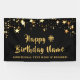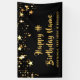 Célébrez la personne d'anniversaire et accueillez les invités de la fête avec cette bannière à thème noir et or avec des étoiles d'or idéal pour célébrer N'IMPORTE QUEL anniversaire d'âge pour lui ou elle. Le design vous permet de le personnaliser avec votre message personnalisé (l'exemple de texte indique HAPPY # BIRTHDAY NAME dans une police manuscrite de script de brosse avec du texte supplémentaire facultatif qui peut être supprimé si non désiré). MODIFICATIONS : Modifiez la couleur noire de l'arrière - plan et/ou modifiez le style, la taille, la couleur ou le placement de la police de texte en cliquant sur CUSTOMISER PLUS LOIN. Contactez le concepteur via Zazzle Conversation ou makeitaboutyoustore@gmail.com si vous souhaitez modifier ce design sur un autre produit ou si vous souhaitez coordonner des éléments.