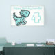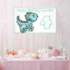 Banderoles Tout âge Blanc et Turquoise T Rex Dinosaur Anniver