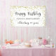 Célébrez chaque année anniversaire avec une bannière HAPPY BANTHDAY personnalisée avec leur nom et combien d'années ils fêtent. Design moderne et chic avec une bordure en confetti or et une police en script noir qui peut être changée en un style de police ou une couleur différente pour se coordonner avec votre thème de fête. Communiquez avec le concepteur si vous souhaitez modifier ce design sur un autre produit ou si vous souhaitez coordonner des éléments pour compléter votre ensemble de soirées.