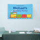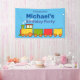 Jouet de dessin animé coloré s'entraîne sur une bannière bleue. Modèles pour ajouter votre nom.