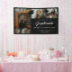 Célébrez la grade avec une bannière de graduation photo personnalisée! Notre bannière de remise de diplômes comprend trois photos pour vous permettre d'ajouter trois de vos photos préférées de la catégorie. "Félicitations à notre diplômé" s'affiche en lettres blanches contre un arrière - plan noir ** Veuillez noter que vous pouvez changer la couleur arrière - plan à n'importe quelle couleur que vous voulez. Personnalisez la bannière photo collage graduation en la customisant avec le nom du diplômé, l'école et l'année de diplôme. Nous avons aussi ajouté des capuchons de graduation noirs qui sont superposés sur les images. **La couleur du graphisme casquette grad peut également être modifiée pour convenir à vos photos.