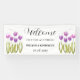 Moderne, élégant, tulipes violettes, aquarelle fleurie Mariage d'été Bannière d'accueil. Bandeau de fleurs rustiques et violettes. Parfait pour les jeunes mariés. Vous pouvez le personnaliser avec le nom et la date de la mariée et du marié.