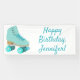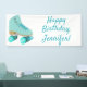 Ajoutez une touche personnalisée aux soirées à thème du patinage à roulettes ou dites simplement anniversaire heureux à quelqu'un qui aime patiner. Cette bannière personnalisée présente l'illustration d'un patinage à rouleaux de style rétro turquoise de lumière avec votre message à côté dans la coordination des lettres de script.
