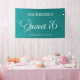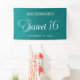 Élégante bannière turquoise Sweet 16 anniversaire pour les filles. Personnalisée avec le nom de l'invitée d'honneur et sa date de fête.