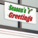 Bannière avec vœux de saison en texte 3D vert et rouge et houx de Noël. Disponible en plusieurs tailles pour intérieur et extérieur.
