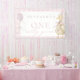 Célébrez le premier anniversaire de votre petite fille de la manière la plus adorable avec cette bannière "One Silly Goose" à carreaux roses ! Avec son motif à carreaux roses en aquarelle douce et son charme vintage, cette bannière crée une atmosphère chaleureuse et fantaisiste pour ce grand jour.