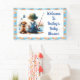 Bienvenue sur notre bannière personnalisée baby shower. Une adorable petite aquarelle douce illustrant un petit garçon qui pêche avec un chien de chiot. Les couleurs de ces invitations sont le bleu et l'orange.