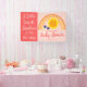 Plus mignon que mignon "Un petit rayon de soleil est sur son chemin" fille design "Baby shower" avec un amusant petit soleil de dessin animé avec une paire de lunettes de soleil roses couché sous son visage souriant et joues roses. Le soleil est entouré au sommet d'un bel arc-en-ciel à trois niveaux en dégradé de couleur rose rose, jaune et orange. "A Little Ray of Sunshine", "Is On Her Way" et "Baby shower" sont tous deux inédites (sauf par designer) — ils peuvent être supprimés, mais pas modifiés. Conception composite par Holiday Hearts Designs.