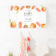 Célébrez l'arrivée d'un nouveau petit amour avec cette bannière de baby shower sur le thème des agrumes ! Parfaite pour ajouter une touche joyeuse et vibrante à n'importe quelle baby shower, cette bannière personnalisée présente de belles oranges aquarelles et des tranches de pamplemousse entourant le doux message « Un petit amour arrive ». Personnalisez-la avec le nom des parents pour une décoration vraiment unique et sincère que les invités adoreront. Idéale pour les événements intérieurs et extérieurs, cette bannière sera un point de mire époustouflant pour votre célébration. Bannière personnalisée de baby shower « Un petit amour » avec des oranges illustrées à l'aquarelle. Conçue et illustrée par Kristine Lee - www.kristineleedesigns.com