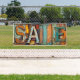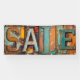 Cette bannière cool a l'air de lettres grungy/rouille en métal qui épellent VENTE. Parfait pour une entreprise non conventionnelle, pointue et urbaine.