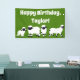 Cette bannière de fête d'anniversaire personnalisée est parfaite pour les fêtes à thème de la ferme ou pour lancer une fête pour toute personne qui aime les moutons. Ces fournitures de fête présentent des illustrations de moutons du Valais BlACTE en blanc et noir contre un arrière - plan vert vif. La bannière est prête à être personnalisée avec votre propre message en caractères blancs gras.