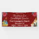 Invitez votre communauté à célébrer la saison avec votre église en utilisant cette bannière personnalisable pour la messe de Noël à la bougie. Cette bannière d'église de 60 cm x 1,8 m est disponible en matériaux pour l'intérieur et l'extérieur et est fournie avec l'option d'inclure des œillets pour une suspension facile. Le design festif présente un fond rouge, des poinsettias rouges dans les coins supérieurs, une illustration de la nativité dans le coin inférieur gauche pour commémorer la naissance de Jésus, et des bougies de Noël allumées avec des feuilles de houx dans le coin droit. La bannière indique "Rejoignez-nous pour une messe de Noël à la bougie", avec un texte entièrement personnalisable pour inclure le nom de votre église, la date de l'événement et les heures de service. Parfaite pour promouvoir l'événement de Noël