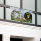 Vente immobilière Parfait bannière maison en gras noir avec des lettres jaunes. Customisez ce panneau pour votre entreprise immobilière, vendre plus de maisons Remplacez la maison par votre propre logo.