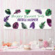 La bannière Festive prune violet, fraise rose et verte d'anniversaire est une façon audacieuse de dire heureux Hawaii 5-0. Les feuilles et fougères de la monstère sont colorés pour une soirée tropicale à thème du 50ème anniversaire. Les feuilles vert de l'île et violet de prune sont polyvalents pour une variété de célébrations sur le thème côtier.