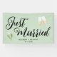 La bannière moderne de réception de mariage juste marié est une bannière de fête de mariage boho simple pour votre réception de mariage. Cette élégante conception "Just Married" fait un ajout amusant à la voiture de escapade du couple. Un équipement de mariage parfait pour la décoration mariage avec tulipes à fleurs et verres à champagne. Customisez avec le nom de la mariée et du marié et la date du mariage de la fête de mariage.