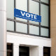 Une bannière qui dit Votez (comme vos droits reproductifs en dépendent) avec un arrière - plan bleu et les mots en blanc.
