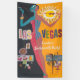 Bannière vinyle personnalisable facilement pour une fête d'enterrement de vie de jeune fille à Las Vegas !!! Ajoutez simplement vos détails ! Illustration vintage d'une affiche de voyage aux États-Unis, FLY Las Vegas représentant une femme avec des lunettes de soleil fumant une cigarette. Elle se tient debout à côté d'un soleil avec des jeux de hasard et une scène de vacances avec un palmier tropical. Certains des jeux incluent la roulette, le Bingo, les machines à sous, les jeux de cartes avec la Reine de Cœur, etc.