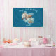 This birthday party banner features a western horse watercolor design with soft floral accents and classic cowgirl elements, including cowgirl boots and a cowgirl hat. The rich navy background paired with turquoise and neutral tones creates an elegant western look that’s perfect for a horse birthday party.