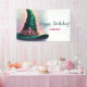 Bannière d'anniversaire fantasque, avec un élégant casquette de sorcière vert orné de bijoux rose étincelant et d'une couronne lunaire. Parfait pour les amateurs d'imaginaire musical et de fêtes enchantées, ce design ne manquera pas d'impressionner. Les couleurs vives et les détails magiques évoquent un sentiment d'émerveillement et de charme, idéal pour des anniversaires jalons, des soirées à thème ou tout rassemblement avec une touche d'imaginaire.