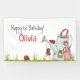 Banderole de 1er anniversaire mignonne, girly et personnalisée, avec une adorable fille ladybug assise sur balançoire, qui est accroché à une adorable arrosage de jardin peut maison, deux coccinelles supplémentaires se joignent à cette scène fantasque et magique du jardin. Personnalisez cette belle bannière de fête d’anniversaire avec le nom de la fille et la personnaliser de bienvenue selon vos besoins.