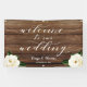 Banderoles White Peony Calligraphy Wood Welcome Notre Mariage